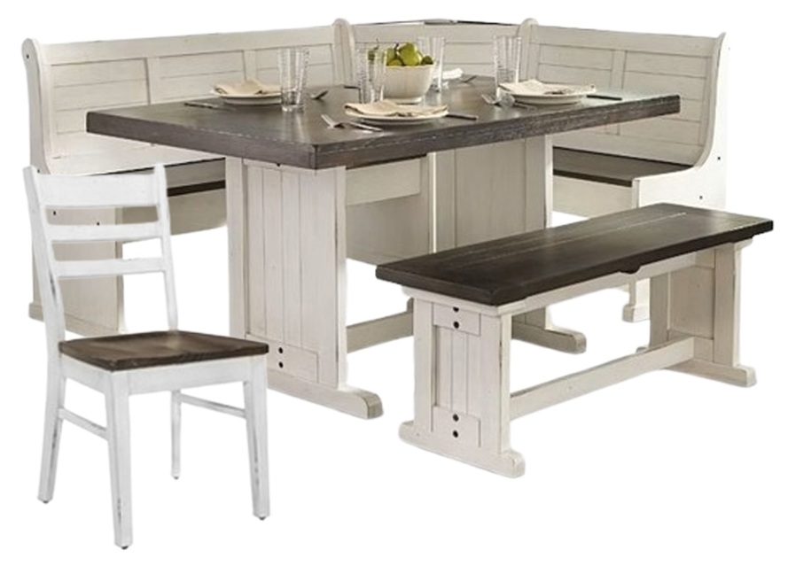 The Carriage House Breakfast Nook is crafted with mindi tops and mahogany bases that accentuate its charming simplicity. The versatile storage benches are reversible to fit any space blending style and function.Read More