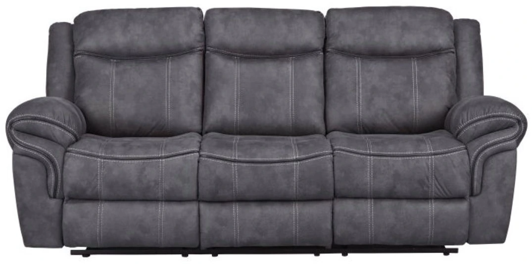 This manual reclining sofa offers comfortable seating with smooth reclining functions for relaxation. Upholstered in soft gray fabric, it provides plush cushioning and sturdy support, making it a great addition for lounging, movie nights, or casual family gatherings.Read More