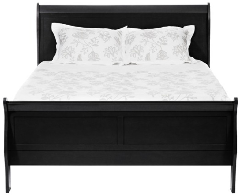 This sleigh bed features a deep ebony finish that enhances its elegant and timeless appeal. The gracefully curved headboard and footboard create a refined centerpiece, while the durable frame offers reliable support and lasting comfort for your bedroom.Read More