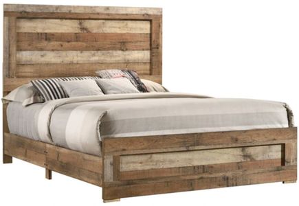 Complete your bedroom idea with this Salt Creek Panel Bed from American Wholesale Furniture. Shown in rustic sand finish, this bed features a wooden frame made of wood products with simulated wood grain laminates. This piece will definitely add style to your bedroom.Read More