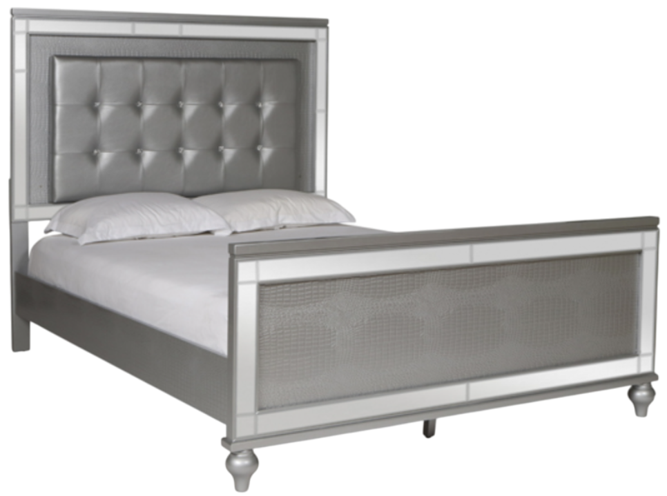 Covered in an alligator texture embossed overlay with a lighted bed and mirror, this bedroom collection is sure to turn heads. Mirrors outline your drawers and fashionable curved feet blocks set this collection apart.Read More