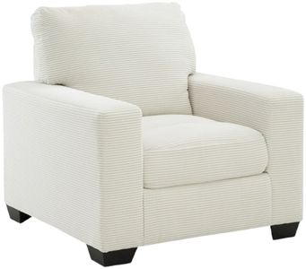 The crisp neutral hue and striking design details of this chair create a living room that expertly reflects your modern taste. For irresistibly cool textural appeal, the ultra-soft fabric is enhanced by a small-scale corded look. With a clean-lined silhouette complete with track arms.Read More